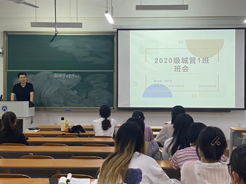 (通讯员 于泽)为勉励城市管理2001班学生坚定理想信念,迸发学习动力,6月9日,兼职班主任司红运在圣井校区8106召开主题班会。