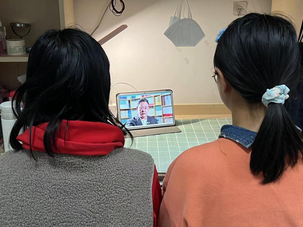 团课以视频和歌曲的形式,向同学们展示了几十年来华夏大地的沧桑巨变。在党的领导下,我们不仅极大地解放、发展了生产力,进入高质量发展阶段,科技也在不断激发着创新潜能,实现了历史性的突破。“天眼”、“奋斗者”号、山东舰、福建舰、“嫦娥五号”……