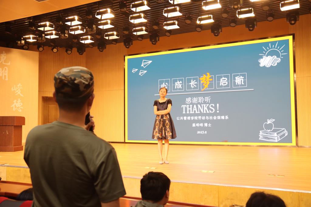 新生入学教育之心理健康宣讲在圣井校区文化活动中心报告厅顺利举行。本次讲座由劳动与社会保障系教师、南开大学心理学博士盛明明主讲,2023级全体新生参加。