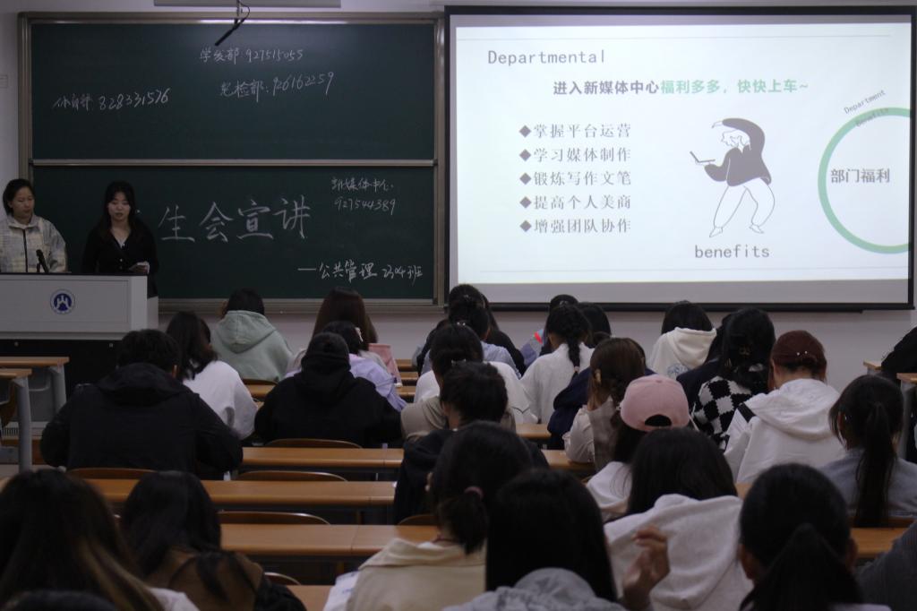 本次宣讲活动,各部门详细介绍了学生会的部门设置情况,为同学们展示了学生会“从学生中来,到学生中去”的宗旨和高效务实的工作作风。各部门准备了丰富多彩、详略得当的宣讲内容,如PPT、快闪视频等,从团建活动、职能分工等方面着手,真情实感地讲解了本部门独有的活动与魅力,深深吸引了23级同学们。宣讲时,各部门副部耐心细心地解答了同学们的疑惑,现场气氛融洽,让同学们感受到公管学生会大家庭的温暖与和谐。