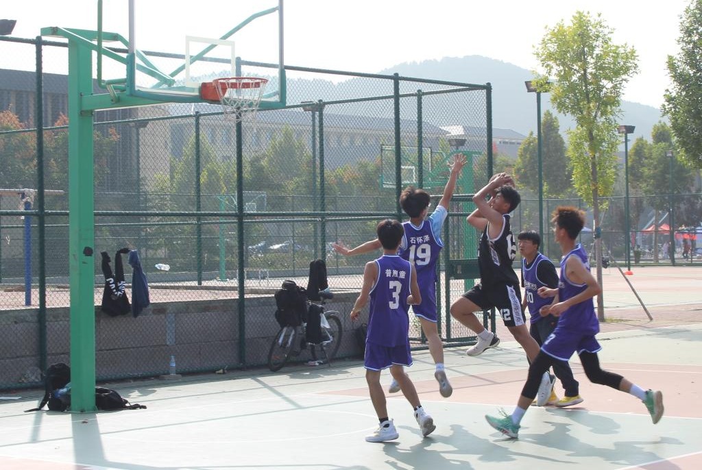 篮球场上朝气蓬勃,青春洋溢。走在篮球场上,随时都可以看到各组队员活力满满地奔跑、跳跃、拉伸,或已经投身于热烈的比赛中,或在为即将开始的比赛做准备,彰显着青年的豪情、拼搏的内涵。