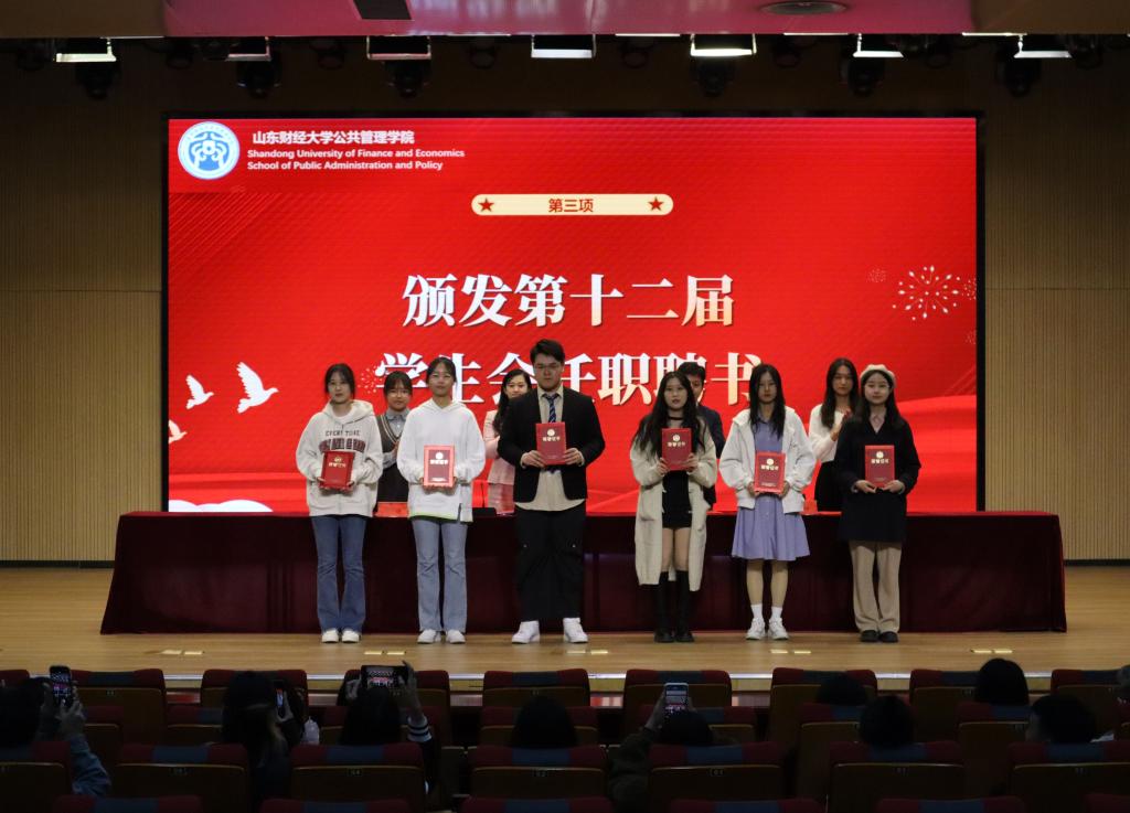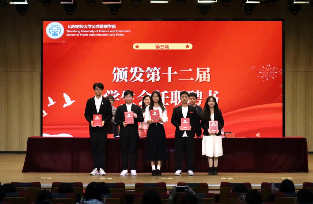 张志斌宣读了学院第十二届学生会成员名单,并给成员颁发了任职聘书。