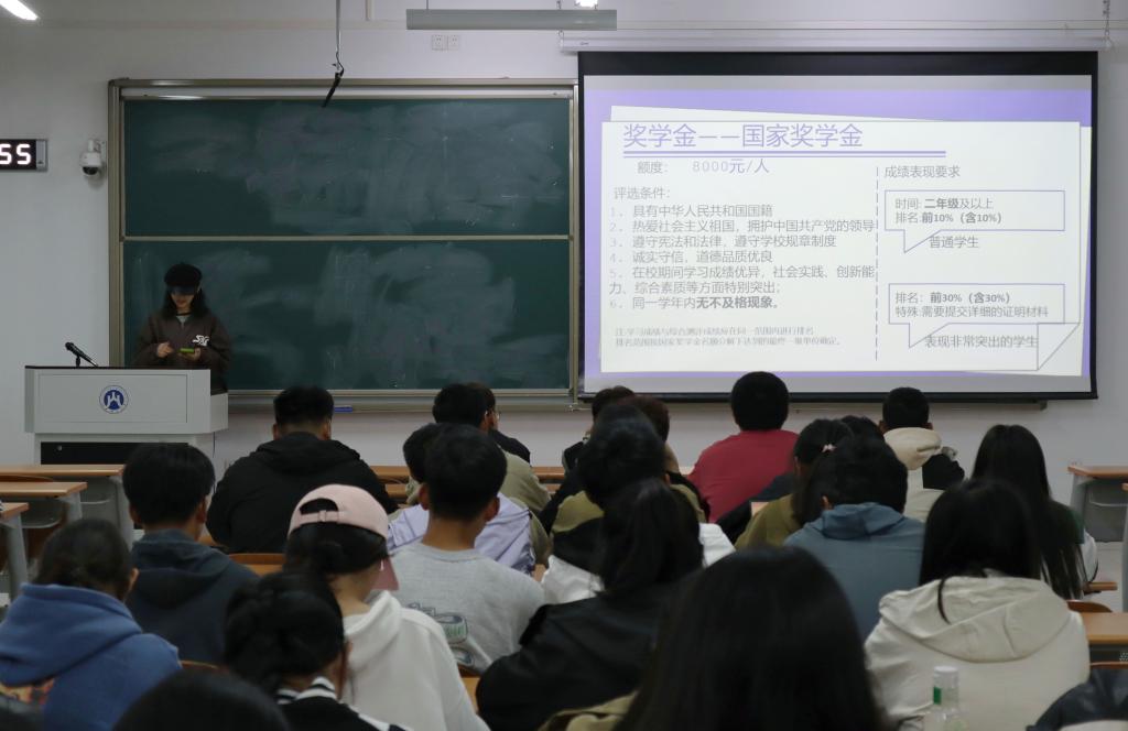 2023级新生资助宣讲活动于圣井校区召开。此次宣讲由大学生资助中心主讲,2023级全体新同学参加。