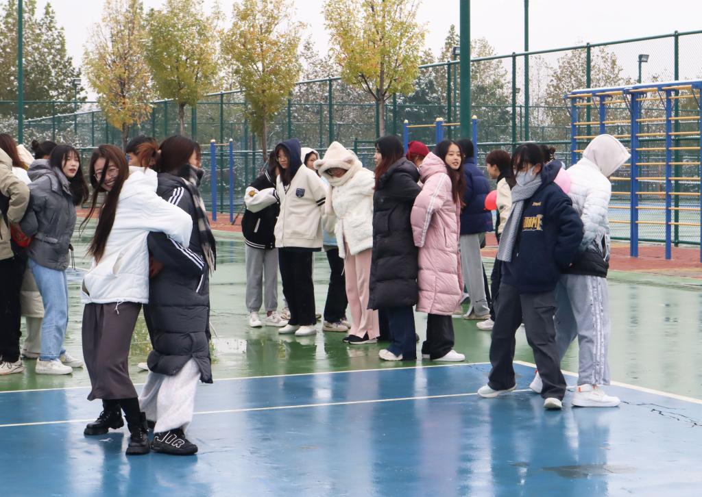 活动伊始,学生会干事们随机分组,各队分头行动,在极短的时间内完成了队伍建设,完成了团队破冰。各组成员携手参加猜成语、扔沙包、背对背运球等娱乐活动。