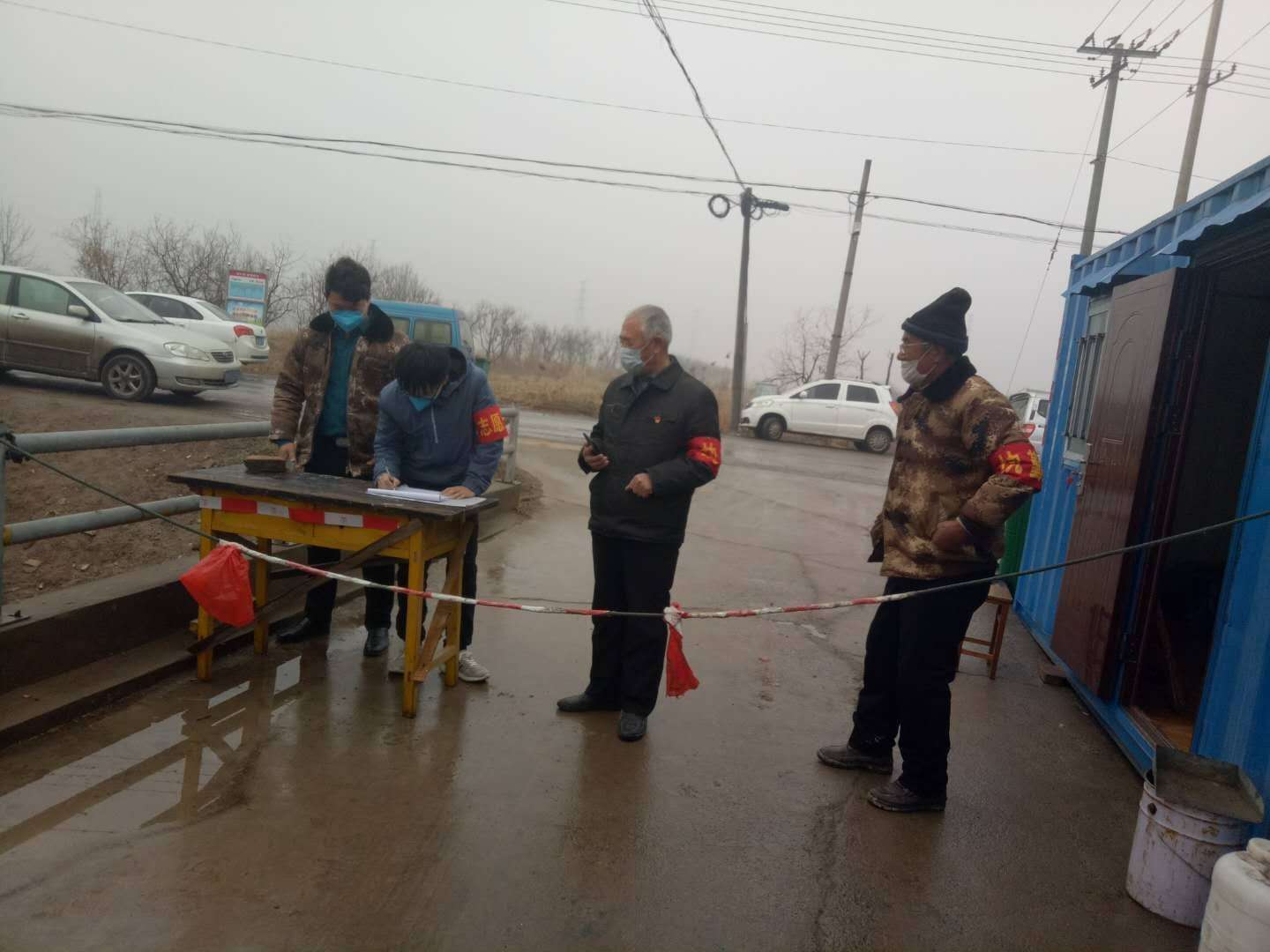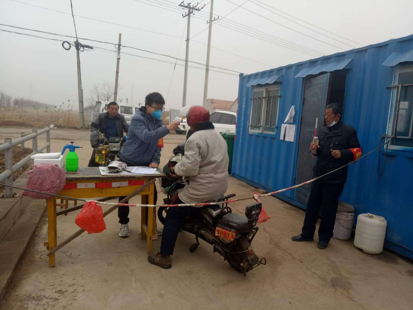 防疫志愿者工作的第二阶段,是在村庄进出口完成进出村庄人员的登记工作。对进出人员进行体温检测,对于个别需要开具出入证明或是有特殊出行需求的村民,做好其信息的收集,并及时反馈给村委会。同时在村中劝返点对外来人员进行劝返、登记,对村中聚众聊天、闲逛散步的人员进行劝说驱散。