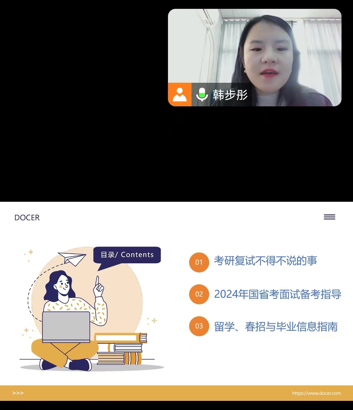 举办线上2024届毕业生就业升学专项指导讲座。此次讲座由学院就业办主任韩步彤主持,特邀山东财经大学优秀校友黄军杰、公考教师张陆主讲,全体2024届毕业生参加。
