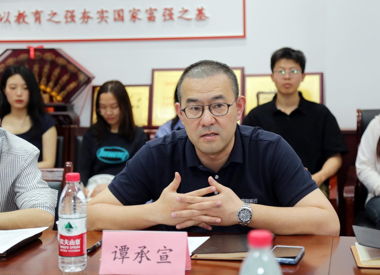 谭承宣以《大模型创新AI产业应用,云智一体服务人才培养》为题,为师生带来了一场精彩的专题报告。他详细阐释了百度AI(人工智能)的基本架构,AIGC(人工智能生成式内容)赋能行业的案例。特别是通过丰富的案例,展示了百度智能云服务人才培养方面取得的成效以及可能深入合作的领域,包括校园智慧管理,AIGC专业(方向)人才培养,AIGC+课程开发,AI赋能教学科研以及教育融合模式创新,引发了在场师生的极大兴趣。