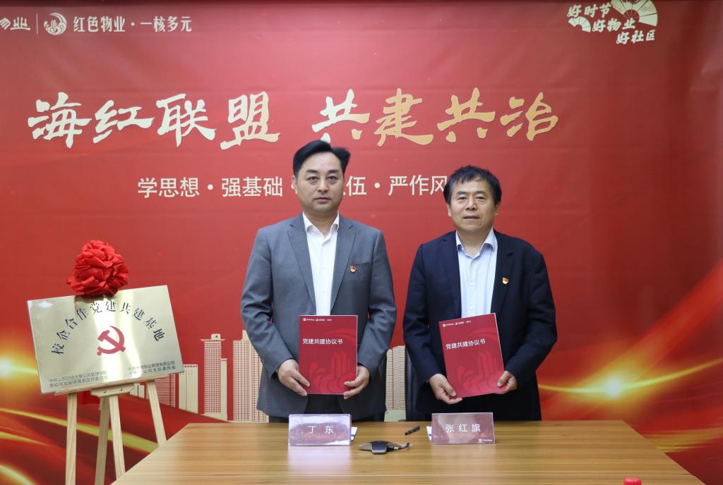 丁东与张红旗分别代表校企双方代表签订校企合作协议与党建共建协议并揭牌。