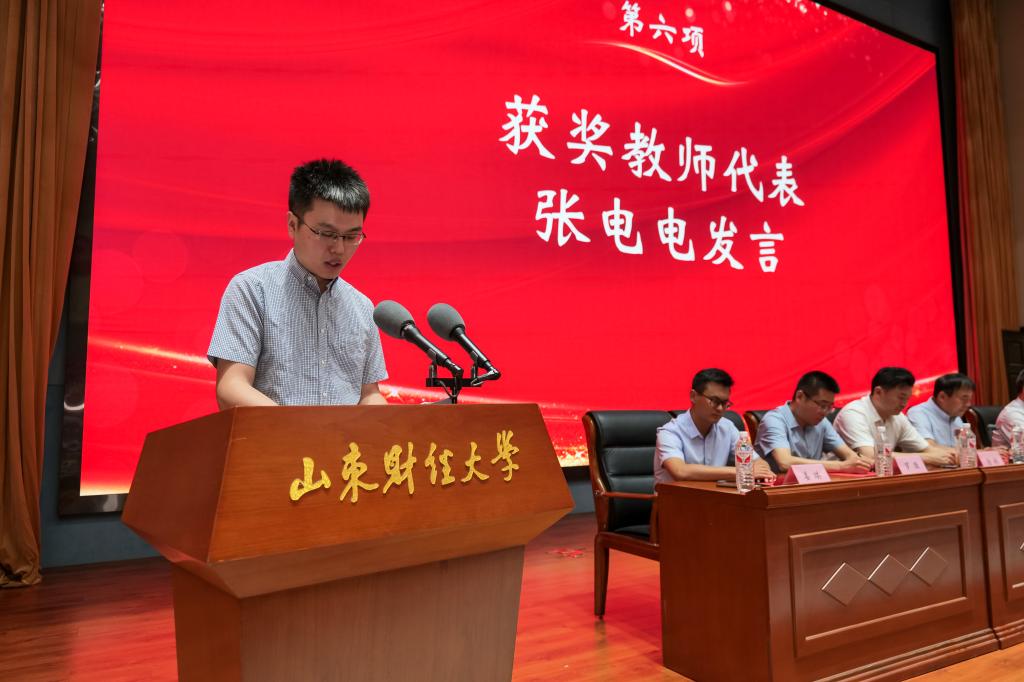 学院首届“我最喜爱的老师”代表张电电发言,他简要介绍了个人全身心投入工作,潜心教书育人的工作情况,表示作为高校的一线教师,今后将用百倍努力做好教学工作,为推动学校高质量发展贡献力量,为培养优秀的社会主义现代化建设者和接班人不懈努力。