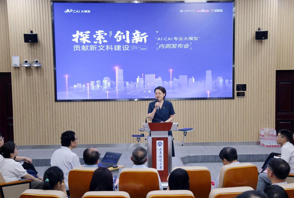 张红霞在主持会议时强调,人工智能赋能教育教学是时代发展的必然选择,也是山东财经大学实现弯道超车的绝佳机遇;“AI才”专业大模型的发布是继《人工智能概论》通识课程发布之后,落地实施“421”行动计划的又一重要举措。相关教师要基于人工智能大模型,充分发挥“人”的作用,在“教”和“用”两方面持续发力,探索出一条由人工智能驱动的山财大教育教学高质量发展新路径。