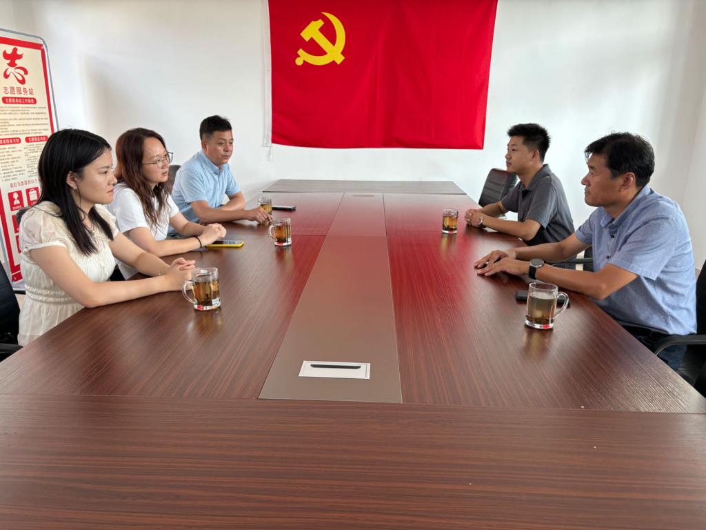 随后,学院领导一行与官庄街道党工委副书记、政法委员、政协委员联络室主任韩云波,官庄街道徐家村党支部书记刘军长进行了座谈。座谈会上,双方就加强校地企合作、促进青年人才培养、提升基层治理效能等议题展开了深入的讨论和交流。许薇表示,学院将充分利用学科优势与校友资源,为地方经济社会发展提供智力支持和技术服务,期待与官庄街道建立更加紧密的合作关系,共同推动乡村振兴战略的深入实施。