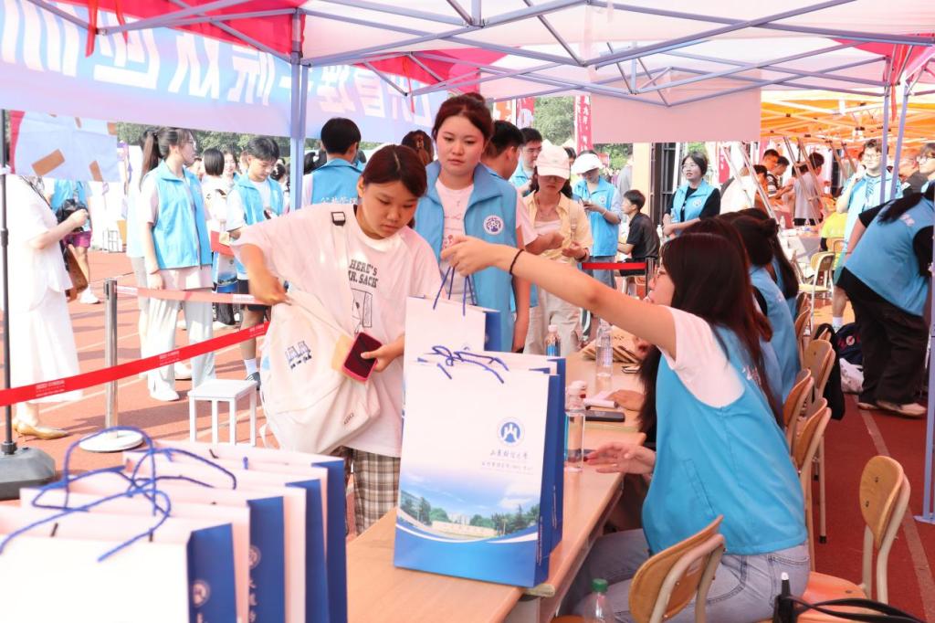 为了确保迎新工作顺利高效进行,志愿者们齐心协力布置好了醒目而温馨的迎新现场,成为一道亮丽的风景线。报到当天,志愿者们早早地来到校园,分布在各个关键位置,帮助新生完成登记、信息核验和物品领取等报到流程,并热情地为新生指引道路、搬运行李。