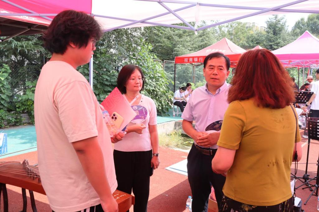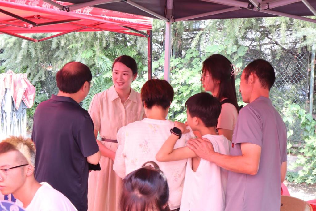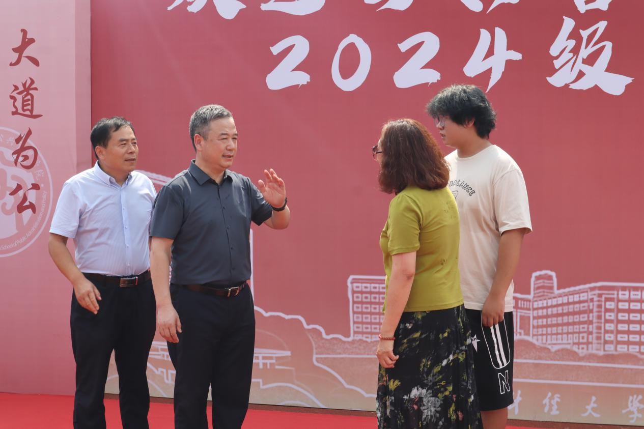 迎新现场视察工作,对学院迎新工作给予高度评价,并与新生和家长进行亲切交谈,了解他们的需求和期待。