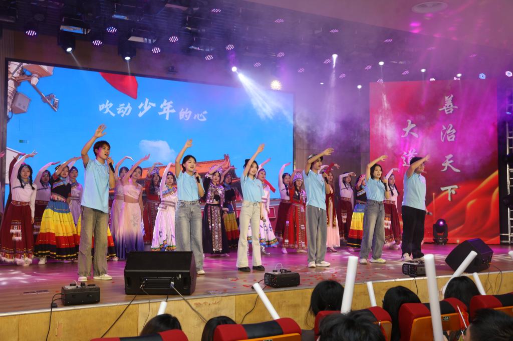 晚会来到第三篇章:弘歌—颂财大之韵。师生与AI共同演唱《我爱你中国》,歌唱之声气势磅礴,爱国之情深沉伟大,科技之势汹涌澎湃。朗诵《筑梦山财大》,同学声情并茂,让观众看到了学院师生在追逐梦想道路上的努力与坚持,激励同学们勇攀高峰、争做时代的弄潮儿。民族舞《石榴花开》,各民族的舞者们身着五彩缤纷的服饰,曼妙舞姿犹如盛放的民族石榴之花。最后,晚会在大合唱《明天会更好》中落下帷幕,温暖的歌声传递出对未来的美好祝愿。