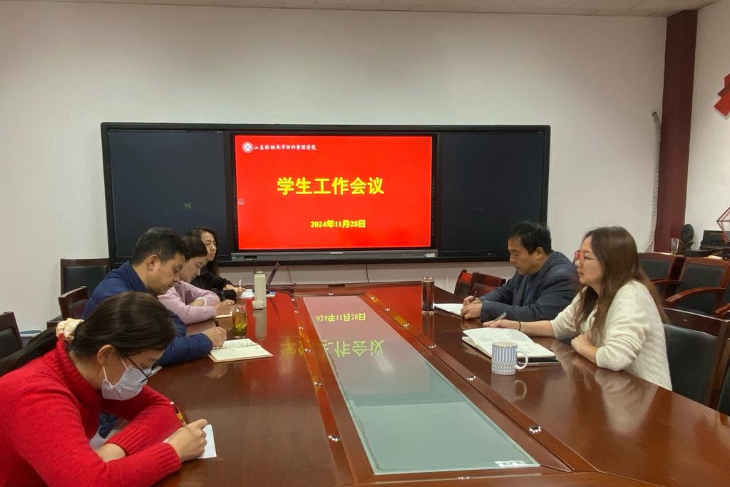 在燕山校区召开学生工作会议,旨在传达学校2024-2025学年第一学期期中学生工作会议精神,进一步强化学院学风建设,严肃考风考纪,并推动辅导员深入学生生活,确保宿舍消防安全,同时鼓励学习互助小组的建立和严格请销假制度的执行。学院党委书记张红旗、副书记许薇及全体辅导员参加了此次会议。