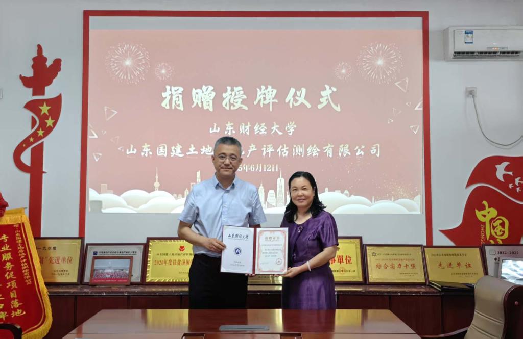 会上,田远向山东国建土地房地产评估测绘有限公司颁发捐赠证书,为许燕霞、邓振利、赵立志颁发硕士研究生合作导师聘书。田远、邓振利代表双方签署研究生联合培养基地协议,共同为“山东财经大学研究生实践教学基地”揭牌。根据协议,双方将聚焦土地管理专业,在教学实践、案例研发、科研创新、教育培训、智库建设等领域开展全方位合作,构建协同育人新格局,力争打造校企合作新典范。