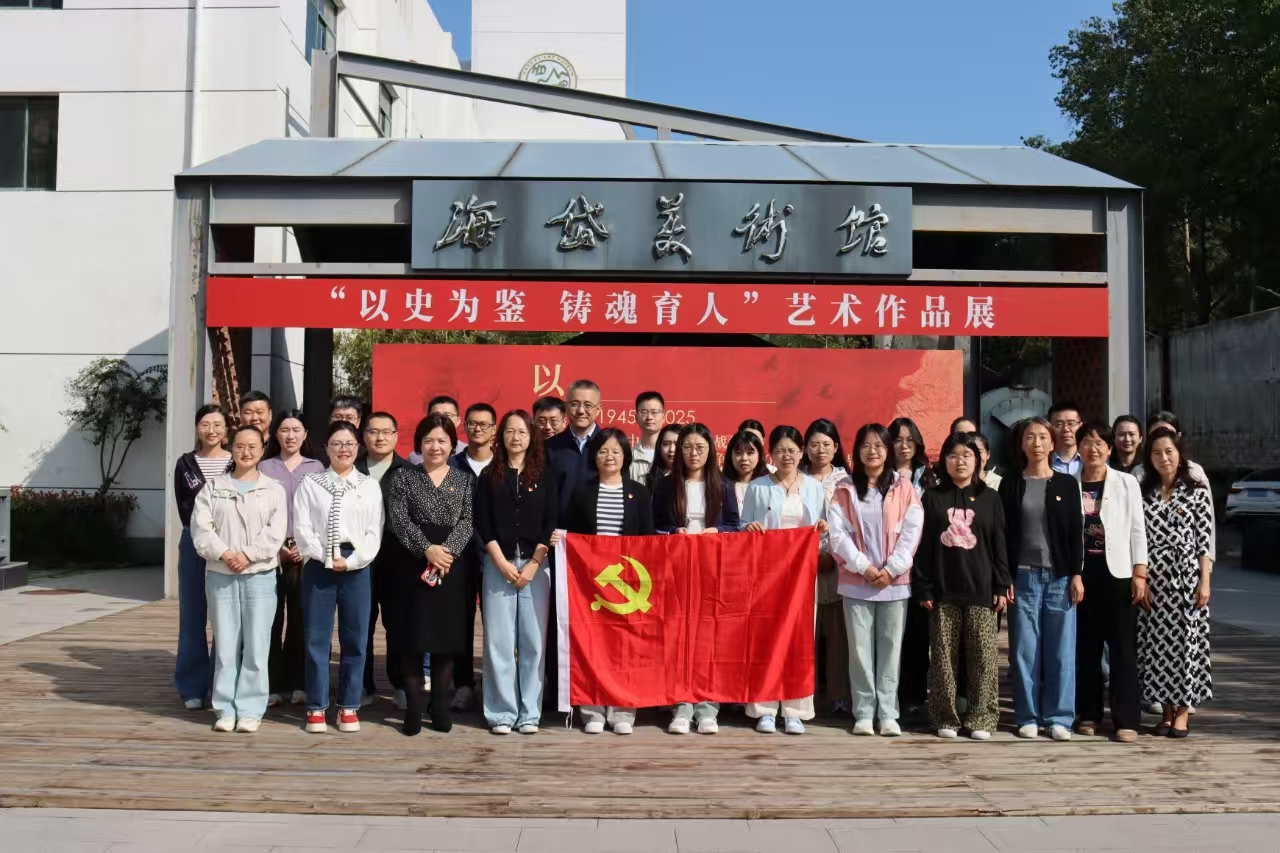 2025年9月24日上午,在纪念中国人民抗日战争暨世界反法西斯战争胜利80周年之际,学院党委组织领导班子成员、师生党员代表前往海岱美术馆参观纪念中国人民抗日战争暨世界反法西斯战争胜利80周年“以史为鉴铸魂育人”艺术作品展。