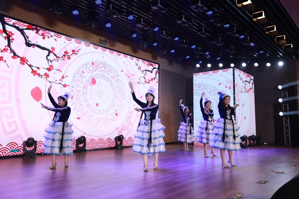 第二篇章“执梦逐光·绘青春”为青春梦想注入活力。情景舞台剧《反诈银行》寓教于乐,为新生带来一堂别开生面的安全教育课;拉丁舞《Latin girl》舞步热情奔放,尽显异域风情;和声合唱《夜空中最亮的星》旋律动人,引发全场共鸣,激励学子勇敢追梦;古今风尚秀《衣冠承古·秀领今朝》与扇舞《万疆》,展现了古今青春风华的对话,激发了青年学子的家国情怀。