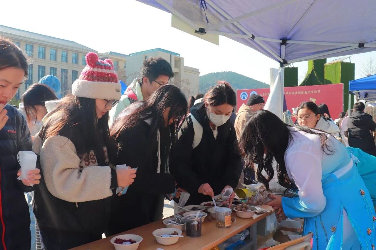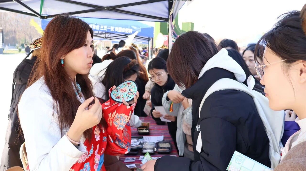 11月20日,民族主题游园会在章丘校区地标广场开展。民族文化展示交流区共设了傣族、回族、藏族、哈萨克族、汉族等8个民族的展区与体验摊位,融合射箭、丢包、美食品鉴等互动项目,通过兼具知识性、文化性与趣味性的一站式体验,将中华优秀传统文化转化为可触可感的生动场景,在各美其美、美人之美、美美与共的和谐氛围中,进一步深化学生对“多元一体”民族格局的理解。