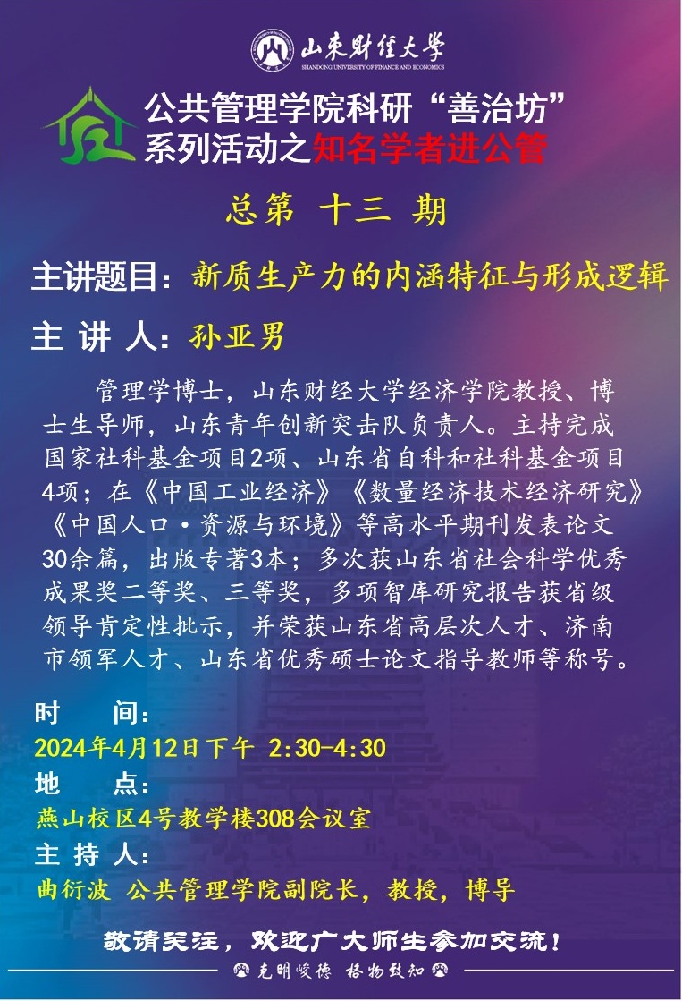 体育论坛 科研“善治坊”系列活动之知名学者进公管总第十三期:新质生产力的内涵特征与形成逻辑