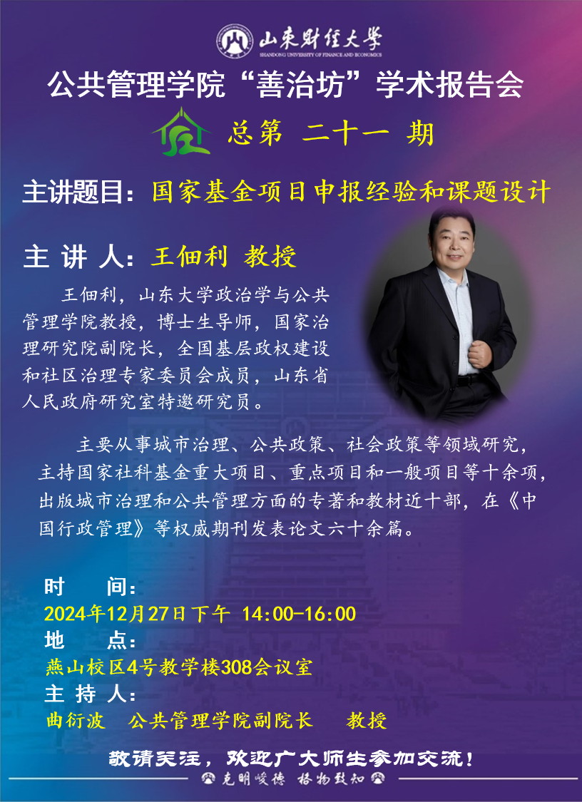 体育博彩讨论社区 “善治坊”学术报告会第二十一期主讲题目:国家基金项目申报经验和课题设计