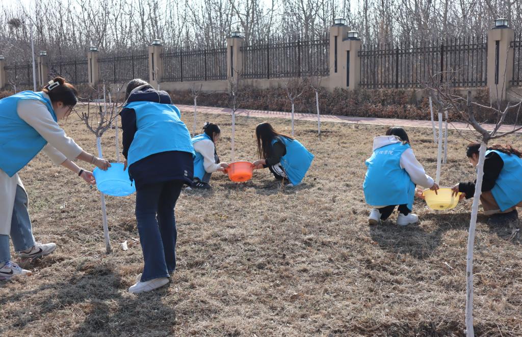 在活动正式开始之前,秘书处同学做好了充分的后勤保障与沟通工作,与学校物业及时沟通,达成合作,并且向负责树木浇水的工作人员认真请教了树木浇水的注意事项,保障了此次活动的顺利进行。学院学生会秘书处和生活卫生部成员及学院办公室值班学生参与到此次植树节活动当中。同学们用涓涓水流汇成春风满枝,用清水浇灌根茎的土壤,用热爱呵护树木的枝桠,让繁茂的世界更加鲜活。
