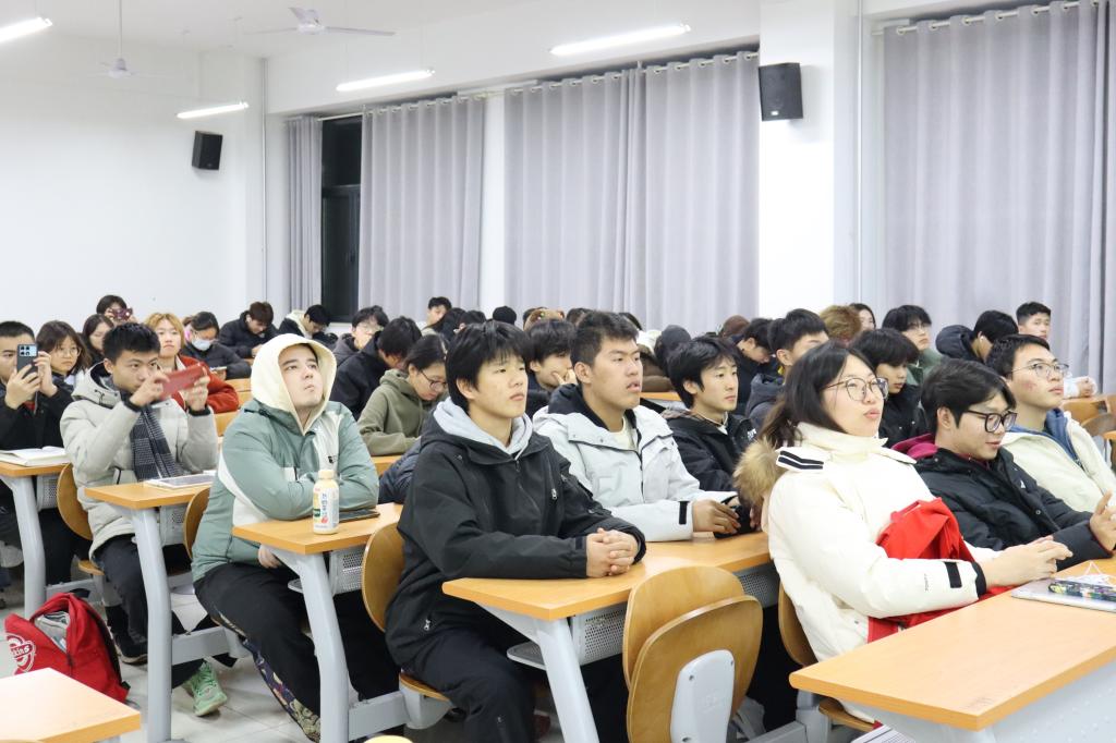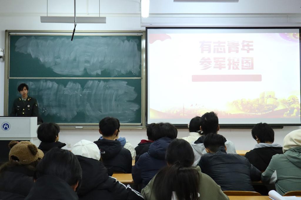“有志青年参军报国”2025春季征兵宣讲会于圣井校区8-106教室举行,学院征兵工作辅导员、退伍学长廖林豪、各班班长团支书、2024级学生参与此次活动。