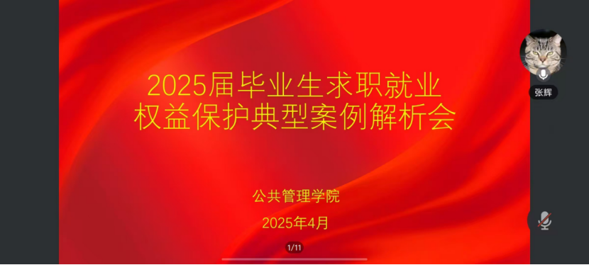 举办“求职就业权益保护典型案例解析”专题会议。会议由学工办主任张辉主持,2025届全体本科生参加。